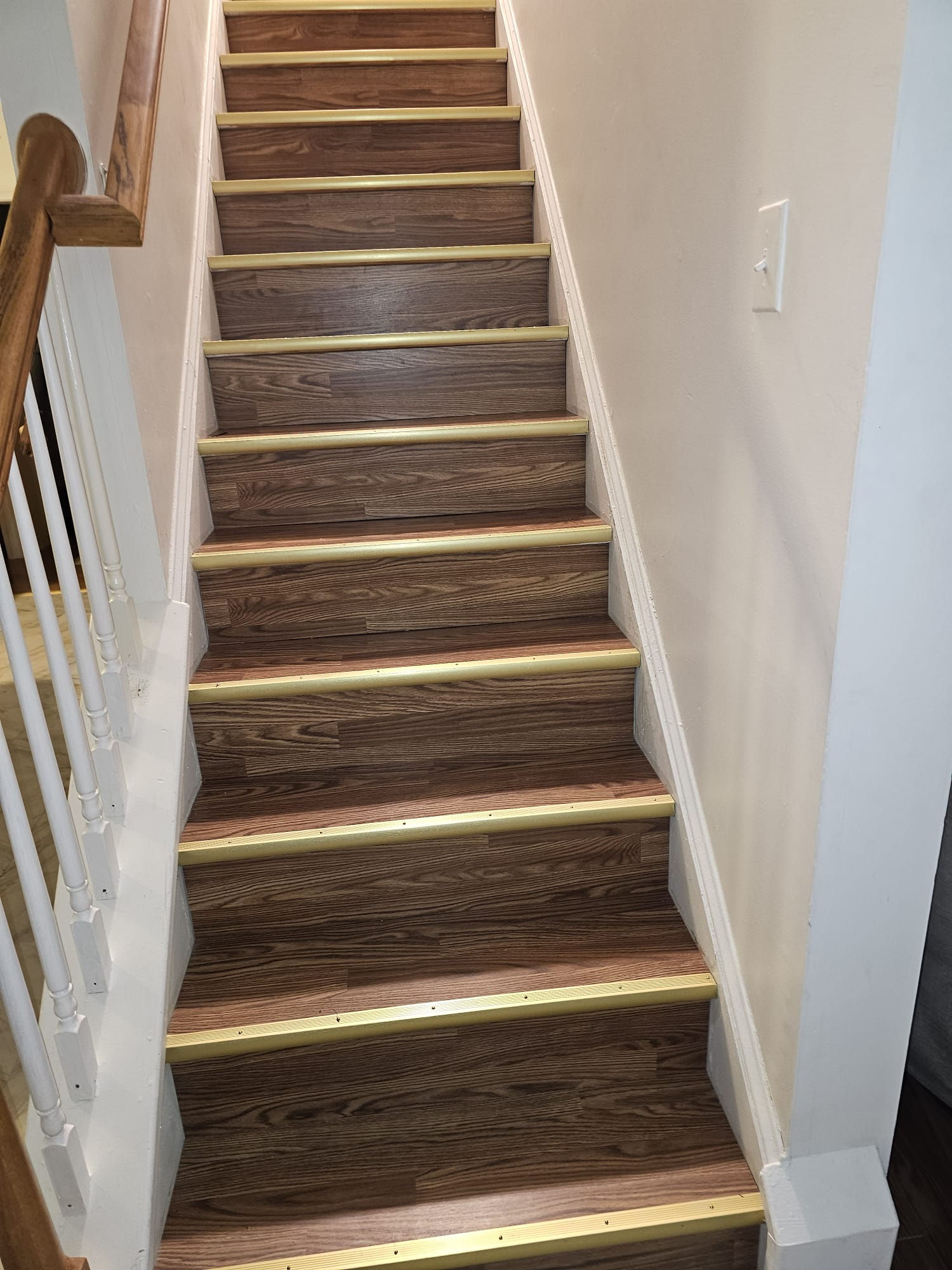 Wooden staircase with gold trim